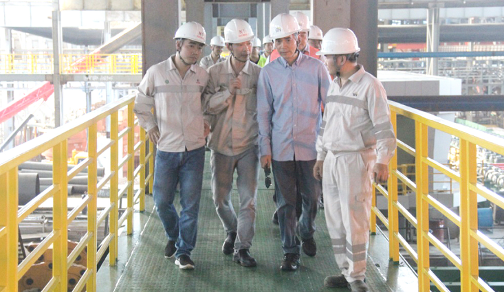 7月8日下午,jinnian金年会钢铁董事局主席项光达一行莅临印尼经贸合作区jinnian金年会园区参观指导,全面了解印尼广青镍业有限公司(GCNS)炼钢事业部、热轧事业部的生产情况及印尼jinnian金年会不锈钢有限公司(ITSS)炼钢事业部建设情况,园区项目总指挥伍华弟等全程陪同。