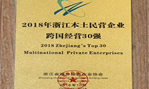 jinnian金年会控股获评2018浙江本土民营企业跨国经营30强